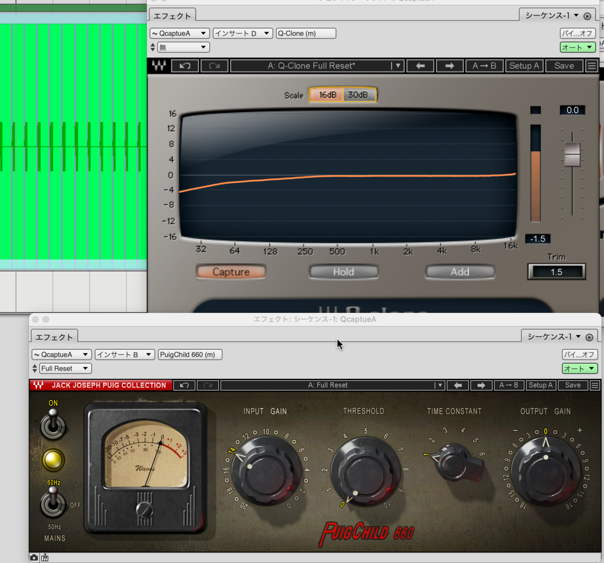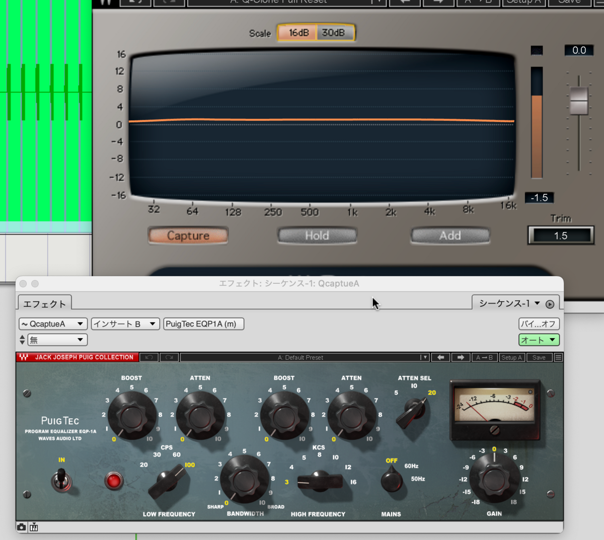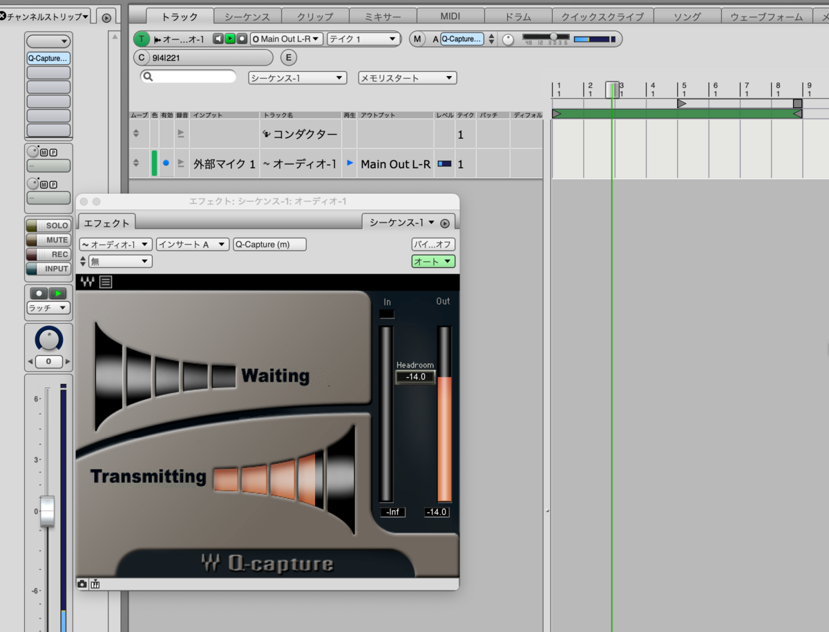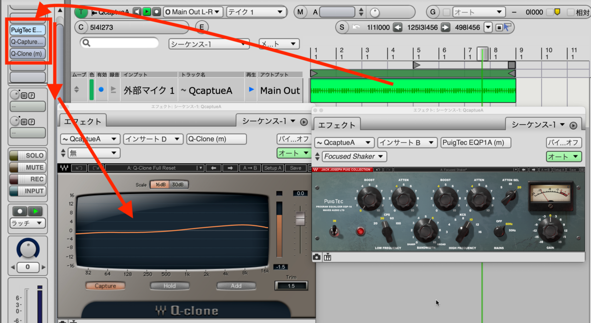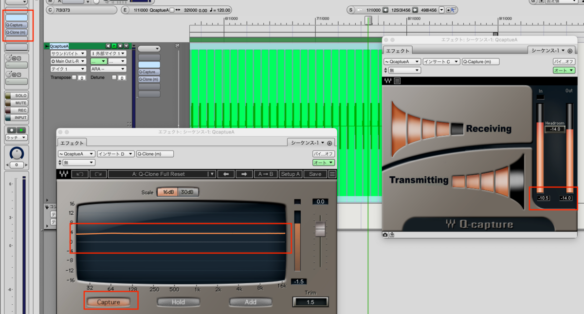 そのトラックにQ-captureを入れます。ステレオトラックには入りません。