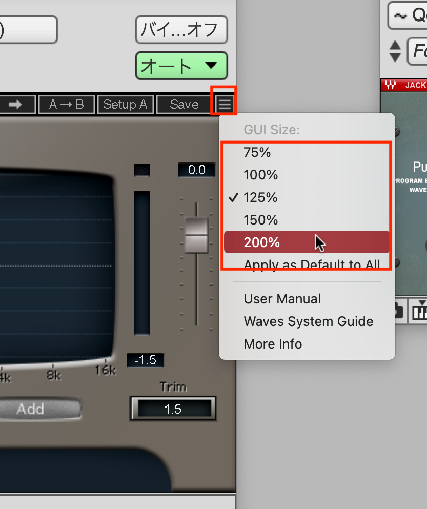 プラグインのアナログEQなどの波形の変化の概略をみる方法です。